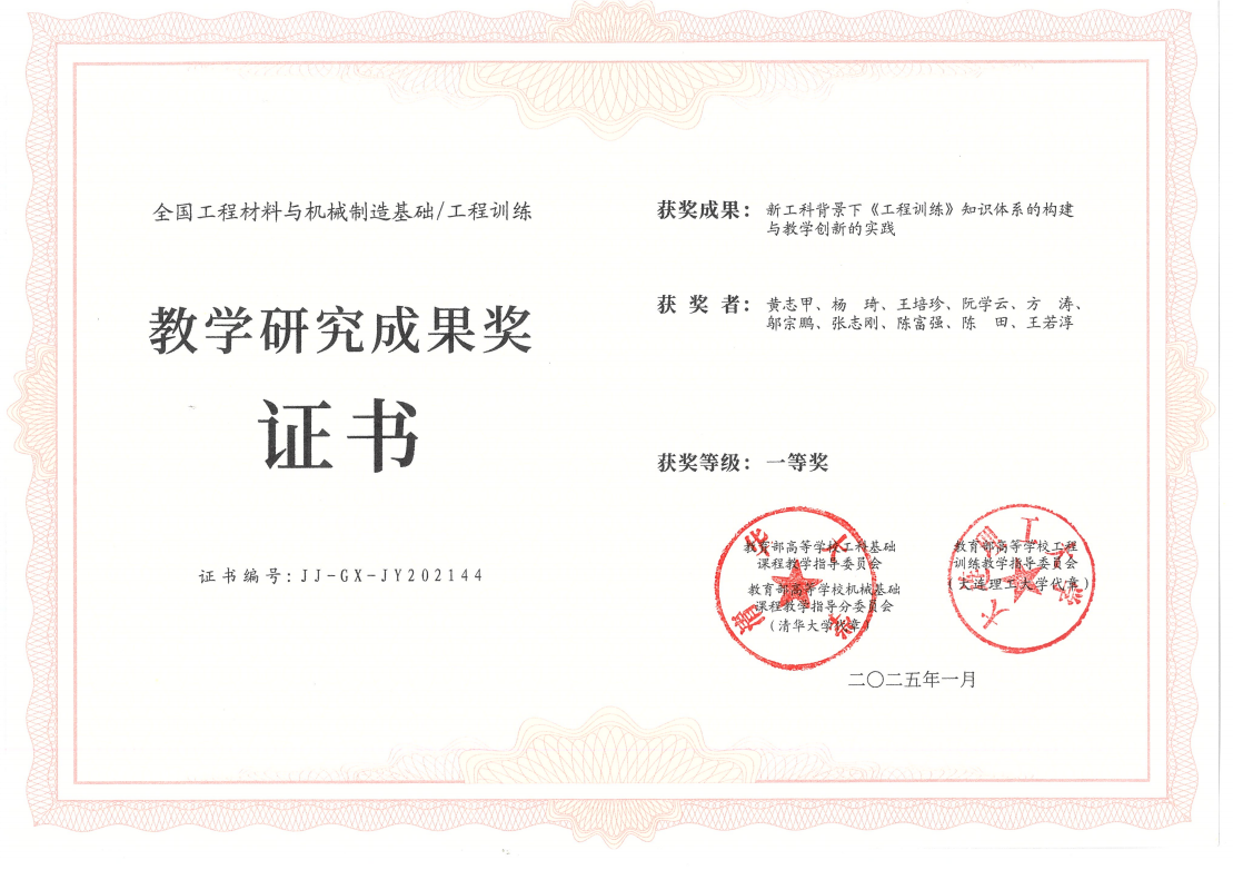 根据教育部高等学校工科基础课程教学指导委员会、教育部高等学校机械基础教学指导分委员会、教育部高等学校工程训练教学指导委员会发布的通知,我校工程实训中心主持的教学研究项目“新工科背景下《工程训练》知识体系的构建和教学创新的实践”(项目号:JJ-GX-JY202144)顺利完成验收,其成果从58个项目中脱颖而出,获得“全国工程材料与机械制造基础/工程训练”教学研究成果一等奖;杨琦承担的全国金工与工训青年教师微课教学评优选手教学方法创新研究项目《基于学习通的<工程训练>混合式的教学设计的研究与实践》(项目号:JJGX-WKJY-42)优秀结题。